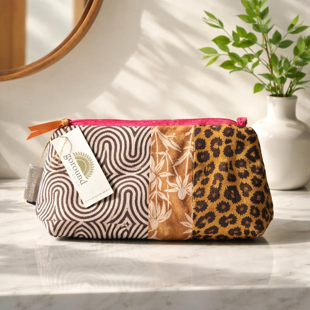 WAUW Toilettas Bruin Camel – Gestreepte Make-up Tas