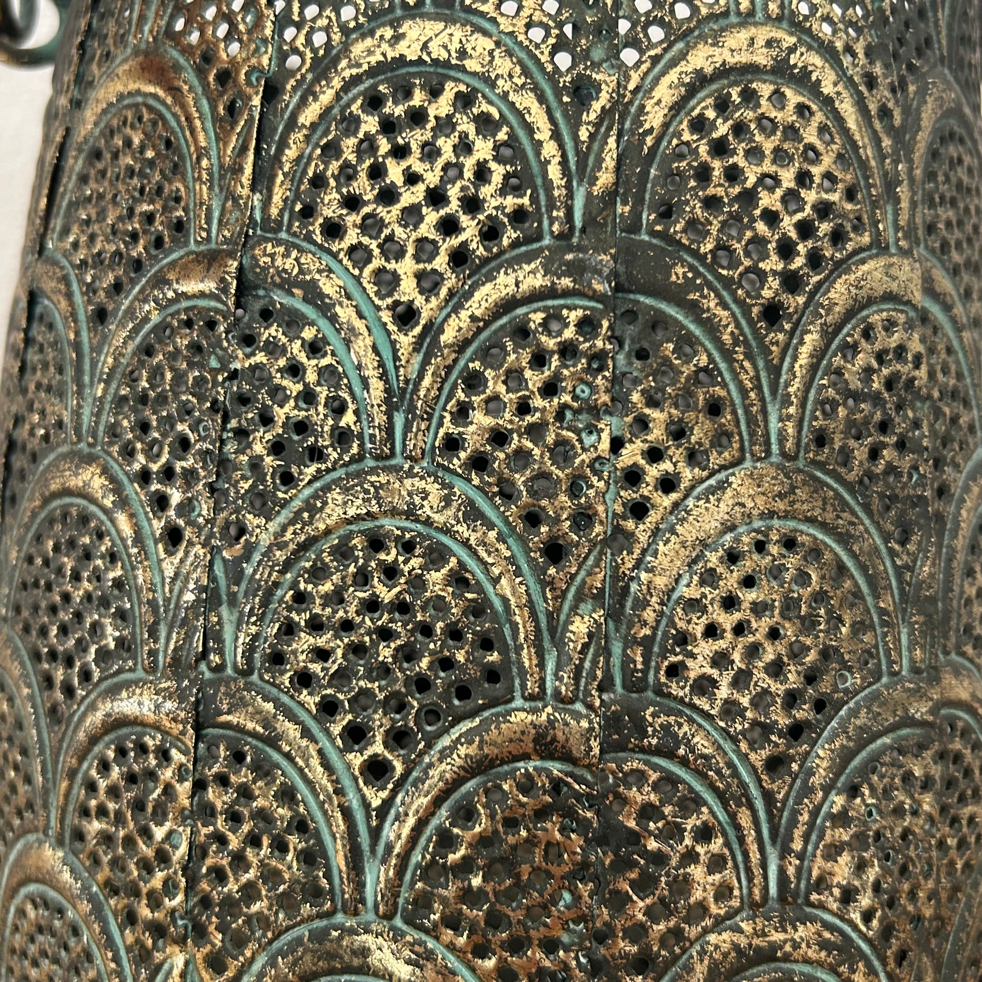 De honderden kleine gaatjes in oriëntaalse patronen geven een prachtig warm en sfeervol effect op de wand, plafond en omgeving.